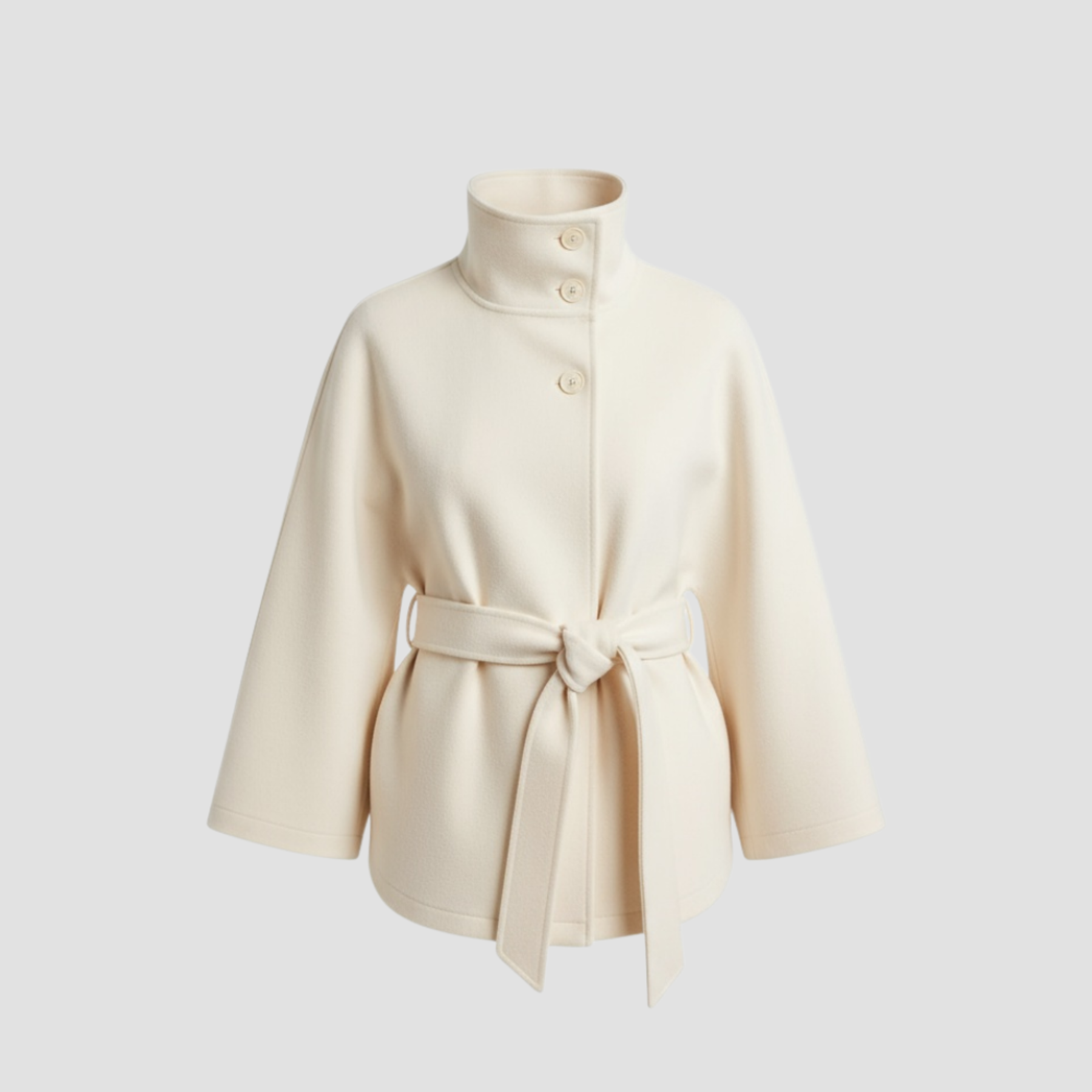 This stylish cape coat for women is an ideal addition to your wardrobe. Crafted from a luxurious wool blend, it offers both warmth and breathability, making it perfect for cooler days. The structured design, featuring a belt to cinch the waist, ensures a flattering silhouette while keeping you comfortable throughout the day. With its elegant button details and versatile design, this cape coat is perfect for layering over any outfit, whether you're heading to the office or out for a casual outing.