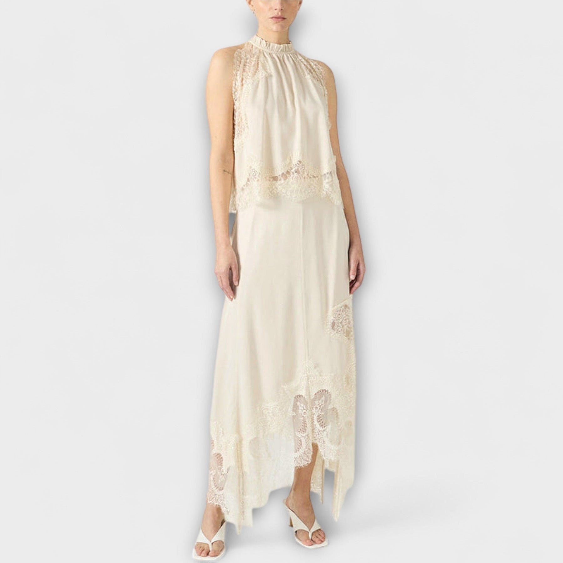 Kaia - Satin Blouse with Lace Trim and Pleated Neckline in Set