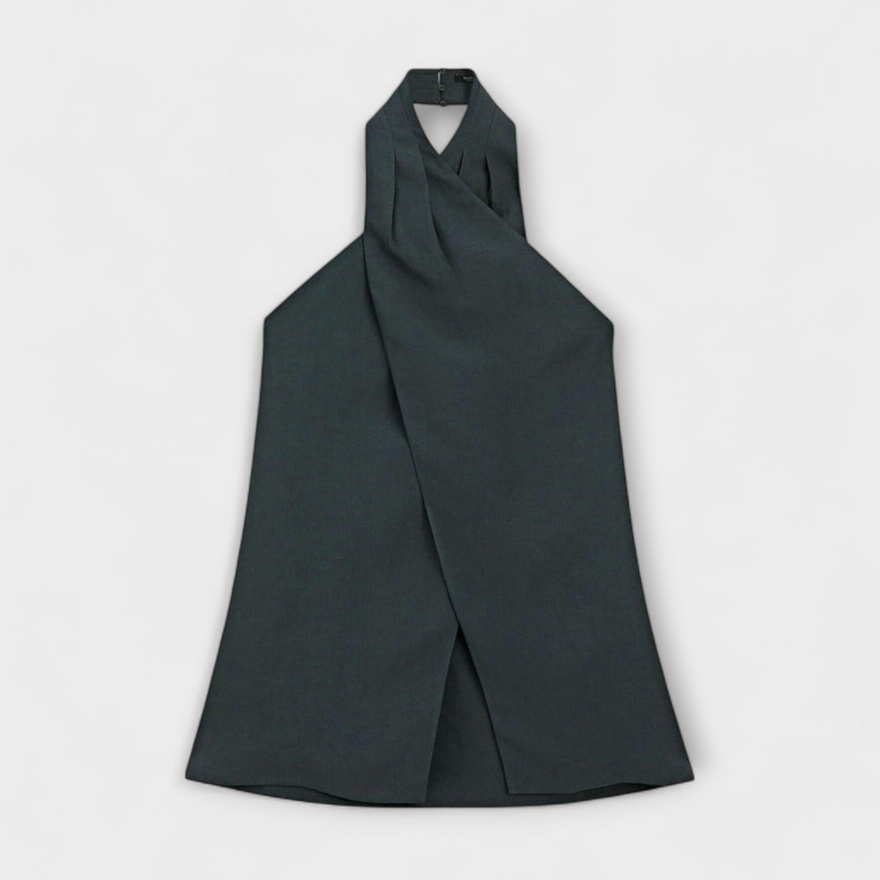 Leah – Blue Halter Neck Top with Back Cut-Out